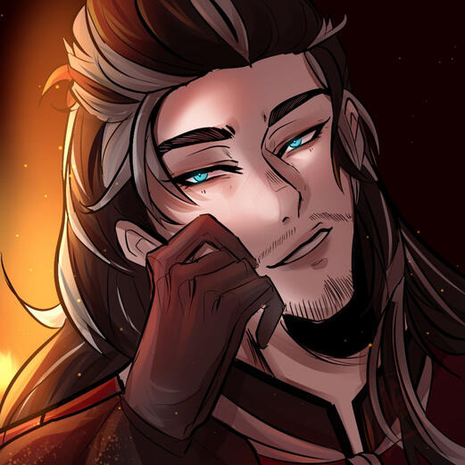 A fierce soul with a sassy wit, they stand as the leader of the Searing Shadows and the proud keeper of the Flamehollow Hearth. When not clashing with kaiju, yokai, demons, and spirits that threaten the realms, they can often be found training alongside their fiancé.In their rare moments of rest, however, they trade flames and blade for controller and blanket, indulging in games or dozing contentedly in a sunbeam.